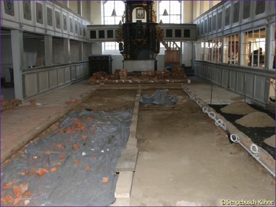 Im Frühjahr 2010 erfolgte mit Unterstützung des neugegründeten Fördervereins erst einmal eine Bestandsaufnahme der Kirche. Im Herbst 2010 begann man dann mit der Schwammsanierung unterhalb der Nordempore, welche im Spätsommer 2011 abgeschlossen wurde. Im Winter 2011/ 2012 und im Frühjahr 2012 folgte die Schwammsanierung im Eingangsbereich zur Winterkirche unterhalb der Südempore, dabei mussten auch Teile der Brüstung bis in den Bereich der Winter- kirche entfernt und ersetzt werden. Aufgrund mehrerer Fußbodeneinbrüche wurde zeitgleich mit der Sanierung des Fußbodenbereiches im Mittelschiff begonnen, dazu mussten alle Kirchenbänke aus der Kirche entfernt werden. Die Kirchenbänke wurden während der Fußbodensanierung ebenfalls durch eine Fachwerkstatt denkmalgerecht überarbeitet. Die dadurch entstandenen Mehrkosten konnten durch Bankpatenschaften teilweise gedeckt werden und fehlen jetzt als Eigenmittel bei der weiteren Sanierung. Die Fußbodensanierung im Mittelschiff wurde gefördert durch den Förderkreis Alte Kirchen Berlin-Brandenburg e.V.
